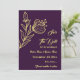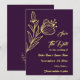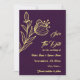 Unique simple wedding save the date card featuring romantic and elegant gold flowers on purple background