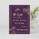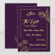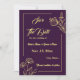 Unique simple wedding save the date card featuring romantic and elegant gold flowers on purple background