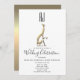 Modern, elegant, unique gold foil Greyhound dog silhouette wedding invitation with custom giant initials of bride and groom.