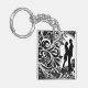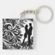 Romantic Embrace White & Black Floral Silhouette Keychain