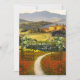 A modern romantic wedding invitation inspired by Italian landscape scenes. A mixed technique fine art painting in festive colours. On the back is a soft overlay to enable your text visibility, framed by watercolor leaves.