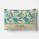 Romantic Floral Aqua Roses Dragonflies Monogram Accessory Pouch