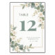 Romantic Floral & Eucalyptus Branches Wedding Table Number