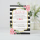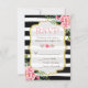 Romantic Floral Gold Glitter B&W Striped RSVP Card