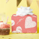 This stylish design features a pattern of white floral hearts on a coral background. Perfect for gift wrapping for birthdays, Valentine's day, wedding, anniversary and for romantic occasions.