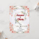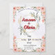 A beautifully designed wedding invitation featuring soft pastel florals, golden decorative elements, and an elegant script font. The peach and blush pink roses, combined with a gold circular frame, create a sophisticated and timeless aesthetic. The use of a bold red font for the couple’s names ensures they stand out, while the formal yet inviting typography maintains a classic and stylish tone. A perfect choice for a couple looking for a romantic and refined wedding invitation.