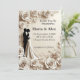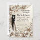 Romantic illustration featuring a bride and groom silhouetted in floral background.