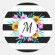 Beautiful stickers with floral watercolor wreath on black & white striped background. Customize the monogram by choosing from many wonderful fonts.
