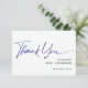Simple minimal modern script "thank you" in blue purple ombre bridal shower card. On the back with wildflowers in a jar. blue purple ombre with customizable text.