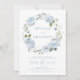 Romantic garden dusty blue floral wreath wedding invitation