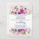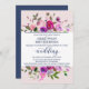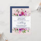 This romantic garden wedding invitation card is perfect for an elegant wedding. The design features a dainty floral watercolor bouquet on a pale pink background with navy blue text. You can change the colour of the background to match your wedding colours by clicking the "customize" button.