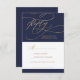 This romantic gold and navy song request RSVP card is perfect for a simple wedding. The modern classic design features fancy swirls and whimsical flourishes with gorgeous elegant hand lettered faux champagne gold foil typography. Build your wedding guest list and your dance floor song list all at once! This wedding response card conveniently asks guests if they will be able to attend your wedding, and also what song will get them to dance.