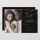 This romantic gold calligraphy black photo save the date card is perfect for a simple wedding. The modern classic design features fancy swirls and whimsical flourishes with gorgeous elegant hand lettered faux champagne gold foil typography.