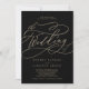 This romantic gold calligraphy black wedding invitation is perfect for a simple wedding. The modern classic design features fancy swirls and whimsical flourishes with gorgeous elegant hand lettered faux champagne gold foil typography.