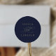 These romantic gold calligraphy navy wedding envelope seals are perfect for a simple wedding. The modern classic design features fancy swirls and whimsical flourishes with gorgeous elegant hand lettered faux champagne gold foil typography. Personalize the label with the names of the bride and groom.