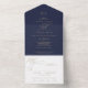Romantic Gold Calligraphy | Navy Monogram Wedding All In One Invitation