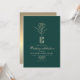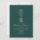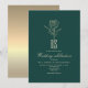 Simple, modern, elegant, formal, romantic emerald green and gold wedding invitation, with monogram at the top.