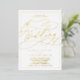 This romantic gold foil calligraphy frame wedding invitation is perfect for a simple wedding. The modern classic design features fancy swirls and whimsical flourishes with gorgeous elegant hand lettered gold foil stamped typography and a formal foil frame.