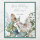Romantic summer green flowers and butterfly birthday wine label for the summer and spring birthday party and chic celebrations.