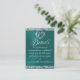 This romantic design features a teal background with glitter borders, a delicate silver scroll heart, details for more information on the front and QR code and monogram placeholder on the back. Also available with different coloured backgrounds for your wedding theme colours. (Glitter is simulated in the artwork). Designed to coordinate with the "Romantic Scroll Hearts & Glitter Wedding" Collection. To change details, click «Personalize». To move the text or change the text size, font, or colour click «Click to customize further»