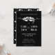 Two white hearts with the text 'wedding' cut out on a black background. Making a crisp and modern yet romantic invitation. On the other side is a matching design with hearts and dots.