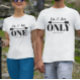 Romantic Valentine's Day t-shirt or honeymoon t-shirt or anniversary t-shirt for a wife, fiancé or girlfriend with His One written in black fonts with cute hearts, an arrow pointing at him, and the year you got together or got married. Show off your love for your boyfriend or husband by stamping yourself as his one and only, his soulmate, the love of his life in this his only t shirt for a proud girlfriend or wife. Matching husband and wife tees, this one for the wife, with I'm his ONE with an arrow pointing at him.