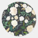 Romantic Ivory Flowers and Greenery Pattern Black Classic Round Sticker