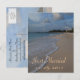 Simple and sweet beach wedding announcement on a tropical beach photo postcard. Blue sky, sandy beach and turquoise ocean with space to upload your own wedding photo.