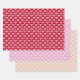 A set of lovely wrapping paper sheets featuring a romantic lace inspired heart pattern design in red, pink and peach, perfect for your Valentine's Day gift wrapping needs.