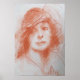 Romantic woman portrait Brown charcoal drawing - Florence Italy 1977