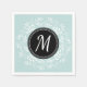 Beautiful paper napkin with mint blue floral wreath and personalized monogram.