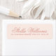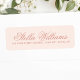 Elegant return address labels with your name in an elegant calligraphy script font and the address below on a light blush pink background.