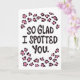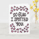 The Romantic Love Pun Card, titled 'So Glad I Spotted You,' is an ideal way to express your affection for that special someone "I Love You". With its distinctive lettering design and playful pattern of animal print spots, this card is sure to make your loved one feel cherished and valued. Its sweet cute style is perfect for a girlfriend or partner, and you have the option to personalize the message, adding a heartfelt touch to your sentiment.