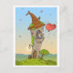 a little wizard in his tower casts his favourite spell ! An colourful postcard showing an wizard-tower with an tiny door and an varanda below the crooky roof.On the varanda you can see an cute little wizard with an blue wizard hat producing big red heart-shaped ballons- which he lets fly into the sky.It looks like the small wizard has been doing this all day because the sky is full of heart-ballons!This cute postcard is perfect to declare your love to somebody! :)