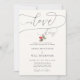 A small branch of red winter berries in watercolor decorates this elegant, simple, classy and modern wedding invitation template. It features modern, elegant script calligraphy with ample flourishes and the title "our love story". Luxurious but simple, classic but chic, modern but timeless. A lovely choice for a romantic winter wedding, a holidays wedding, Christmas wedding or a wedding in the cold winter months with a red and green or simple foliage theme.