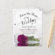 These beautiful postcards are a great way to let your friends and family know to save the date for your upcoming wedding. The design features a gorgeous long stemmed cassis purple, magenta, or berry coloured rose lying on its side reflecting in a pool with waves and ripples. The text features lacy script calligraphy. The back has a cute graphic reading "pencil us in" with space for a custom note which can include your wedding website.