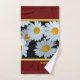 It was advertised as NAVY blue and the color sent was greenish blue. I am disappointed in this product. Quality and printing are great as are all my other orders. As you can see in picture the tea towel on right is perfect, hand towel not so much! Print was awesome and just as ordered