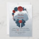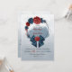 romantic navy blue and burgundy flowers and cute ribbon botanical wreath wedding invitation.