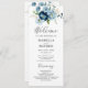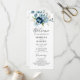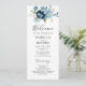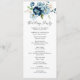 Romantic Navy Blue Floral Wedding Flat Program. Elegant floral wedding program featuring beautiful hand painted watercolor flower bouquets in navy blue, cream and dusty blue with modern calligraphy script. Matching items available.