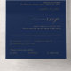 Featuring a navy blue background adorned with opulent gold calligraphy and text, this invitation captures the essence of your romantic celebration. Its thoughtful design folds neatly into an envelope for easy mailing, simplifying the process and reducing your stress.