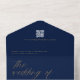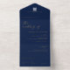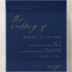 Romantic Navy Blue Gold Delicate Script Wedding All In One Invitation