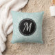 Romantic Pale Blue Floral Black Custom Monogram Throw Pillow