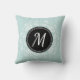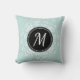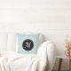 Beautiful throw pillow with personalized monogram with pale blue & white floral wreath design.