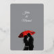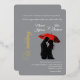 Celebrate your love with this stunning, artistic wedding invitation, featuring a romantic silhouette of a couple sharing an intimate moment under a red umbrella. The elegant black and white contrast, paired with a bold splash of red, creates a timeless and dramatic feel. Perfect for modern, Parisian, European, and vintage-inspired weddings. Personalize with your details and set the tone for an unforgettable day!
