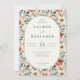 This wedding invitation features a floral-themed layout with an oval central frame surrounded by a dense pattern of stylized blooms in soft pastel shades of peach, pink, cream, and blue-green. The botanical design includes detailed petals and leaves rendered in a watercolor-like effect, creating a vintage-inspired aesthetic that exudes warmth and romance. Elegant serif typography is used throughout, with decorative script for the names, enhancing the formal and celebratory mood. Perfect for couples seeking a classic yet artistic touch for their special day, this invitation sets the tone for a memorable celebration.