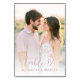 This wedding table card features a romantic scene with two individuals standing close together, set against a softly blurred outdoor background. The design uses a warm color palette of pastel pinks and creams to create an intimate and tender atmosphere. Elegant cursive typography highlights the table number, while clean sans-serif text adds a modern touch. Perfect for adding a personal and affectionate feel to your wedding reception, this card captures the joy and connection of the special day.