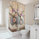 Adorn your bathroom with the romantic elegance of the Romantic Pastel Urn Arrangement shower curtain. This stunning design features a voluminous, professional-style bouquet set in a classic white pedestal urn, showcasing soft pastel flowers including delicate pink and cream roses, voluminous periwinkle blue hydrangeas, and tall spikes of purple foxglove. The arrangement is set against a dreamy, warm background softly blurred with ethereal bokeh lights, creating a luxurious and intimate atmosphere. It is the perfect statement piece for a sophisticated, vintage-inspired, or cottage core bathroom retreat.