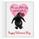 Animal Parade Cute Heads and Tails Penguin Love and Hearts Valentine’s Day Large Card features our fun artwork of a cute penguin holding a pretty rose in its mouth with layered purple, red, and pink hearts behind her created by our award-winning illustrator, Traci Van Wagoner. The inside message reads, I love you all the way around my back with the romantic penguin from the back. With the additional customizable message inside, Happy Valentine's Day, our fun penguin in love character is the perfect way to say I love you anytime.
