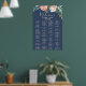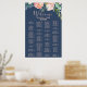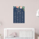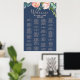 This romantic peonies blue alphabetical seating chart poster is perfect for an elegant wedding. This sign can be used to organize your guests alphabetically or by table number. The floral design features blush pink, peach and white cascading watercolor flowers on a navy blue background. This wedding poster includes enough room for up to about 120 guests. Make room for more (or less) guests by clicking the "customize" button and decrease or increase the size of the font. In addition to the placement of each guest, personalize this sign with the names of the bride and groom and the wedding date.