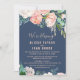 This romantic peony flowers blue elopement reception card is perfect for an elegant post elopement party. The floral design features blush pink, peach and white cascading watercolor flowers on a navy blue background. RSVP cards are sold separately.